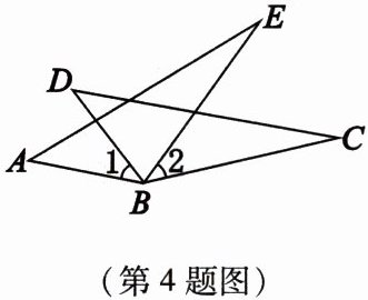 4. 如图,$ AB = DB $,$ BC = BE $,欲证 $ \triangle ABE \cong \triangle DBC $,则可增加的条件是(