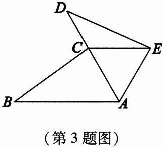 3. 如图,点 $ C $ 在线段 $ AD $ 上,$ AB = AD $,$ \angle B = \angle D $,$ BC = DE $。