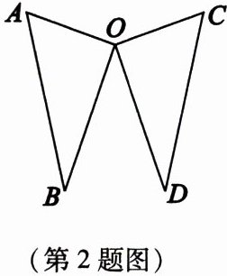 2. 如图,$ OA = OC $,$ OB = OD $,$ \angle AOD = \angle COB $。求证:$ AB = CD $。
