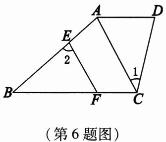 6. 如图,$ AC $ 是四边形 $ ABCD $ 的对角线,$ \angle 1 = \angle B $,点 $ E $、$ F $ 分别在 $ AB $、$ BC $ 上,$ BE = CD $,$ BF = CA $,连结 $ EF $。