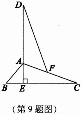 9. 如图,在 $ \triangle ABC $ 中,$ \angle B = 50° $,$ \angle C = 20° $,过点 $ A $ 作 $ AE \perp BC $,垂足为点 $ E $,延长 $ EA $ 至点 $ D $,使 $ AD = AC $,在边 $ AC $ 上截取 $ AF = AB $,连结 $ DF $。求证:$ DF = CB $。