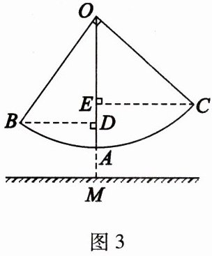 任务 2:如图 3,设 $ OA $ 的延长线与地面交于点 $ M $.