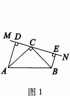 (1)当直线 $ MN $ 绕点 $ C $ 旋转到图 1 的位置时,请你说明 $ \triangle ADC \cong \triangle CEB $,此时 $ DE = AD + BE $.