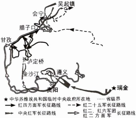 (2)上图是第二组同学为“重走长征路”而绘制的红军长征路线图,请你从中选择两个重大事件,并说明你选择的理由。