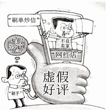 B 【解析】本题中漫画含义为某“网红店”通过“刷单炒信”,获得虚假好评,从而误导消费者。建议该店通过诚信经营来获得良好信誉,所以B项说法符合题意。A项说法与题意相反,不正确。C项说法不是给网店的建议,而是给政府部门的建议。D项“参与社会公共事务”与本题漫画寓意不符。