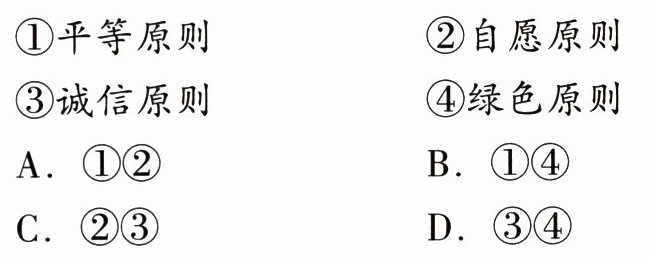 ①平等原则 ②自愿原则 ③诚信原则 ④绿色原则