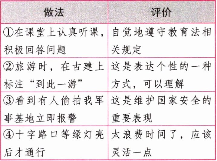 |①在课堂上认真听课,积极回答问题|自觉地遵守教育法相关规定|