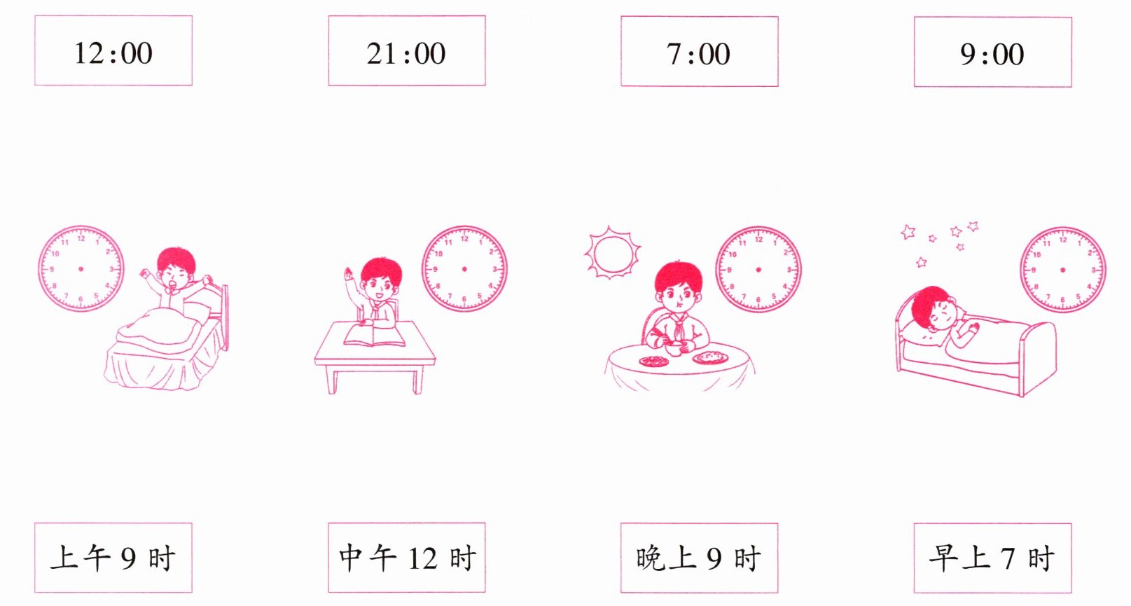 上午9时 中午12时 晚上9时 早上7时