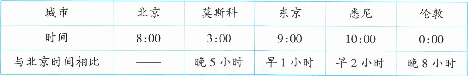 );莫斯科时间比北京时间晚 5 小时,当北京时间是 $15:00$ 时,莫斯科时间是(10:00