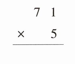 $\begin{array}{r}71 \\× 5 \\\hline\end{array}$