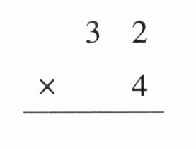 $\begin{array}{r}32 \\× 4 \\\hline\end{array}$