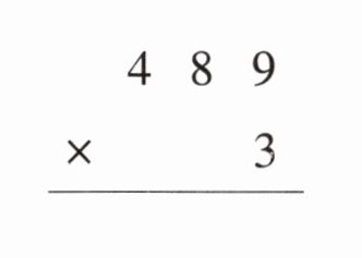 $\begin{array}{r}489 \\ ×\ \ \ \ 3 \\ \hline\end{array}$