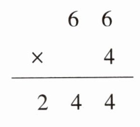 $\begin{array}{r}66 \\ ×\ \ \ \ 4 \\ \hline244\end{array} $改正:$ \begin{array}{r}516 \\ ×\ \ \ \ 7 \\ \hline3512\end{array} $改正: