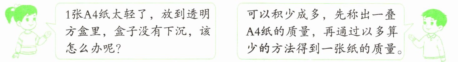 4. 计算:一张A4纸质量 = $ m ÷ 100 $。