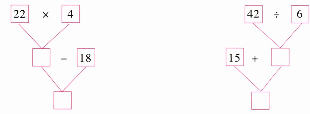 | $45 - 18 - 6$ | $45 - 18 ÷ 6$ | $50 - 12 × 3$ | $50 - 12 ÷ 3$ |