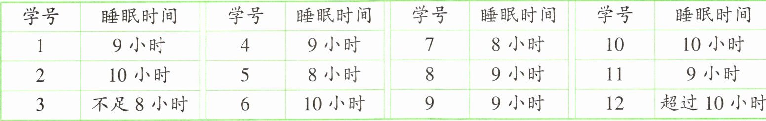 教育部办公厅发布的《关于进一步加强中小学生睡眠管理工作的通知》中要求:小学生每天睡眠时间应达到 10 小时。下表是三年级二班笑笑所在小组同学平均每天睡眠时间的调查情况。