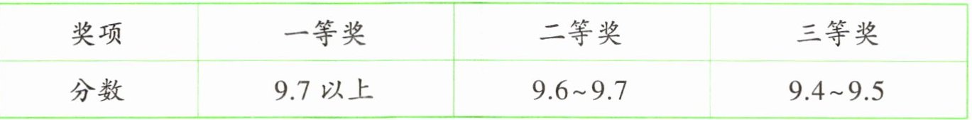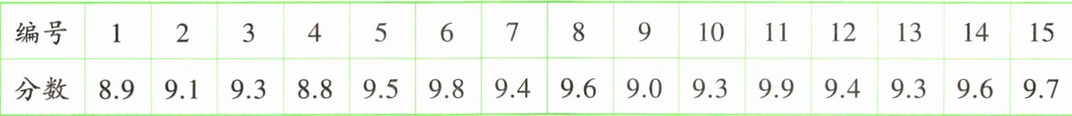 2. 实验小学举办“做时代好少年,强国有我”主题演讲比赛,参加决赛的有15名学生,得分情况如下表。