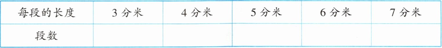 6. 一根彩带长 420 分米,如果剪成 3 分米的小段,最多可以剪成多少段?如果剪成 4 分米、5 分米、6 分米、7 分米长的小段呢?将下表填写完整。