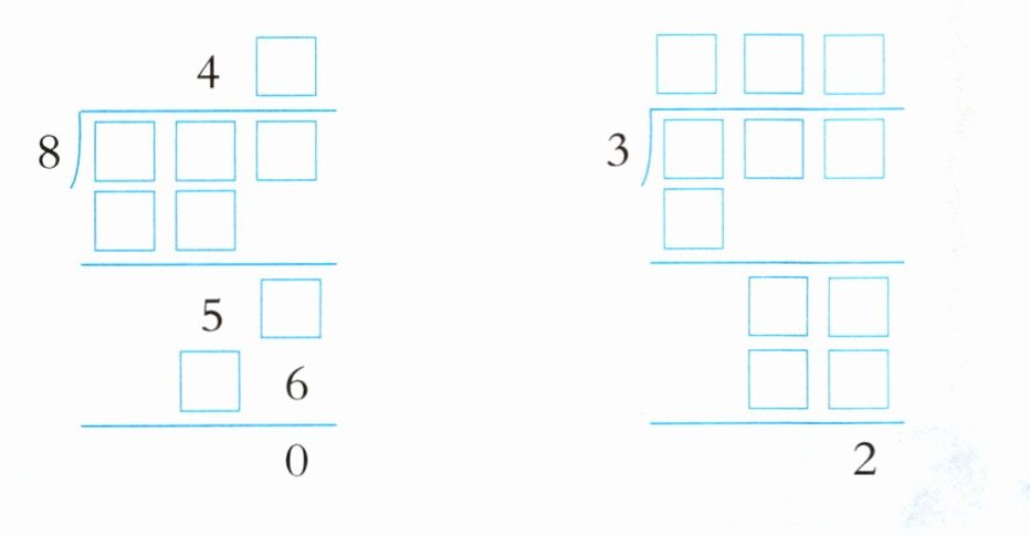 $\begin{array}{r} □\ □\ □ \\ 3\enclose{longdiv} {□\ □\ □ } \\ □\ \ \ \ \ \ \ \\ \hline □\ □ \\ □\ □ \\ \hline 2\end{array}$