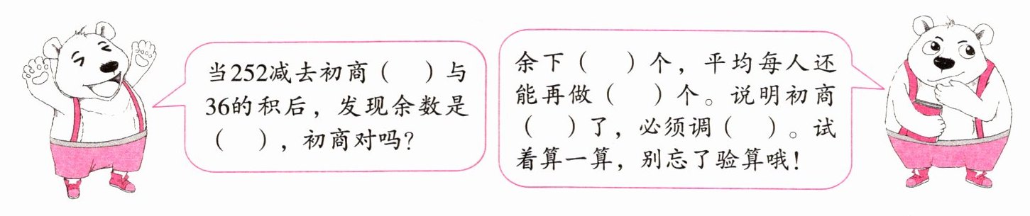 2. (1)为庆祝国庆节,四年级一班的同学们准备制作 252 个小灯笼,分给 36 个同学去做。平均每人要做多少个?