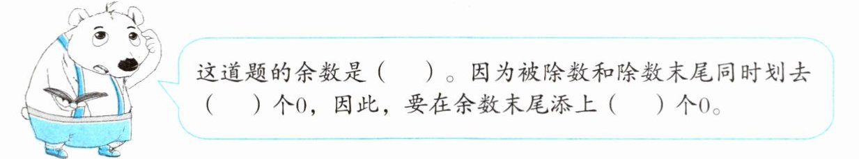 因为被除数和除数末尾同时划去$1$个$0$,因此,要在余数末尾添上$1$个$0$