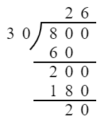 $800 ÷ 30 = 26$(个)$\cdots \cdots 20$(元)
