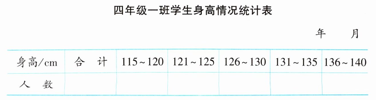 1. 先用画“正”字的方法整理四年级一班同学的身高情况。