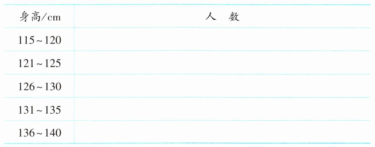(3) 9岁儿童的标准身高一般在126~140厘米之间。这个班的同学中,有( )人的身高低于标准身高。你给他们的建议是( )。