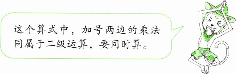 )这个算式中,加号两边的乘法同属于二级运算,要同时算。