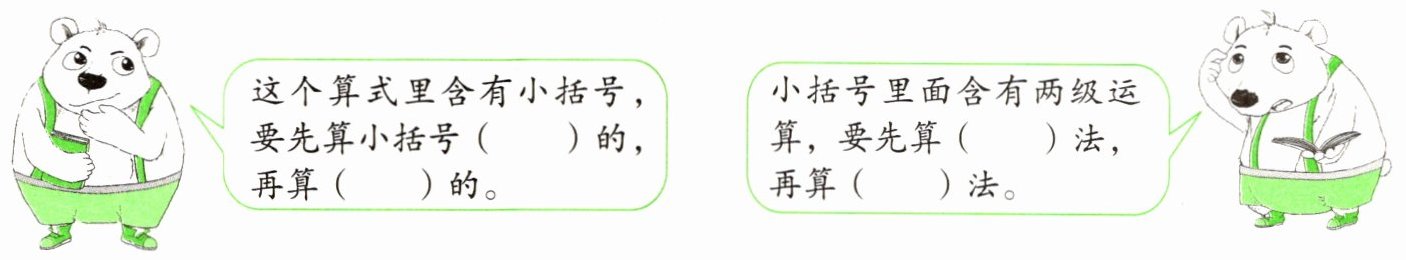 这个算式里含有小括号,要先算小括号(里面)的,再算(外面)的。