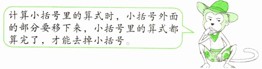 计算小括号里的算式时,小括号外面的部分要移下来,小括号里的算式都算完了,才能去掉小括号。