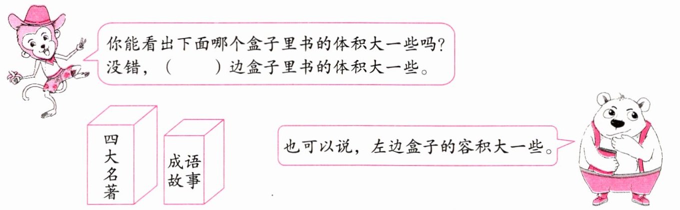 你能看出下面哪个盒子里书的体积大一些吗?没错,()边盒子里书的体积大一些。