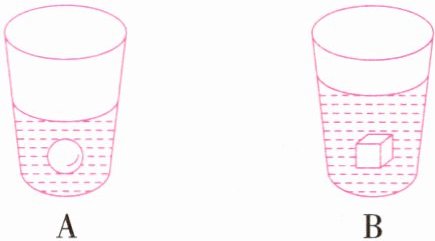 2. 原来两个杯子中的水一样多,放入A、B两个物体后,水的液面高度如图所示。哪个物体的体积大一些?
