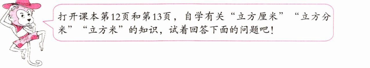 打开课本第12页和第13页,自学有关“立方厘米”“立方分米”“立方米”的知识,试着回答下面的问题吧!