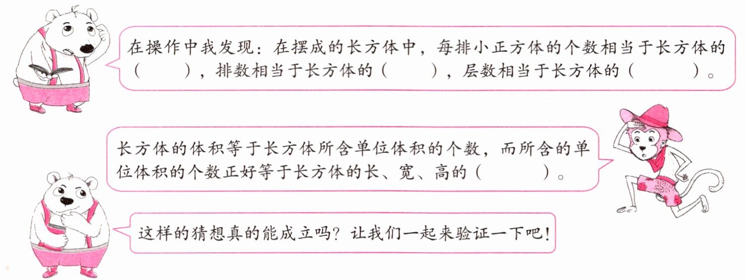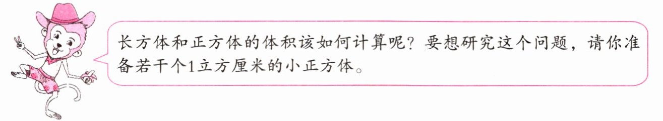 长方体和正方体的体积该如何计算呢?要想研究这个问题,请你准备若干个1立方厘米的小正方体。