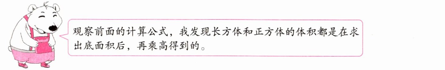 观察前面的计算公式,我发现长方体和正方体的体积都是在求出底面积后,再乘高得到的。
