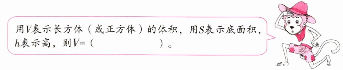 用 $ V $ 表示长方体 (或正方体) 的体积,用 $ S $ 表示底面积,$ h $ 表示高,则 $ V = $ ( )。