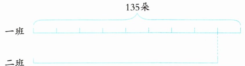二班做了多少朵?列式:$135×\frac{8}{9} = 120$(朵)