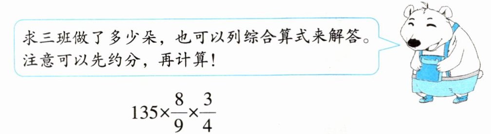 求三班做了多少朵,也可以列综合算式来解答。注意可以先约分,再计算!