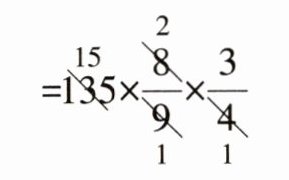 $=\overset{15}{\cancel{135}}×\frac{\overset{2}{\cancel{8}}}{\underset{1}{\cancel{9}}}×\frac{3}{4}$