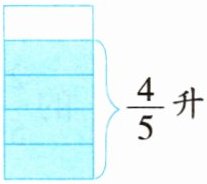 方法一:因为$\dfrac{4}{5}$的分数单位是(),所以$\dfrac{4}{5}$升就是()个$\dfrac{1}{5}$升,把它们平均分成2份,每份是()个$\dfrac{1}{5}$升,即()升。