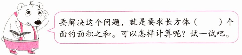 要解决这个问题,就是要求长方体()个面的面积之和。可以怎样计算呢?试一试吧。