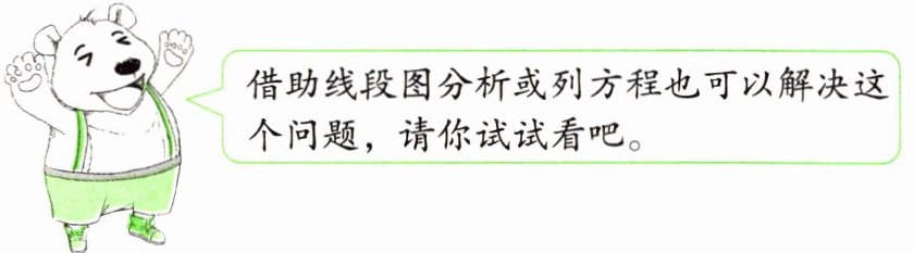 借助线段图分析或列方程也可以解决这个问题,请你试试看吧。
