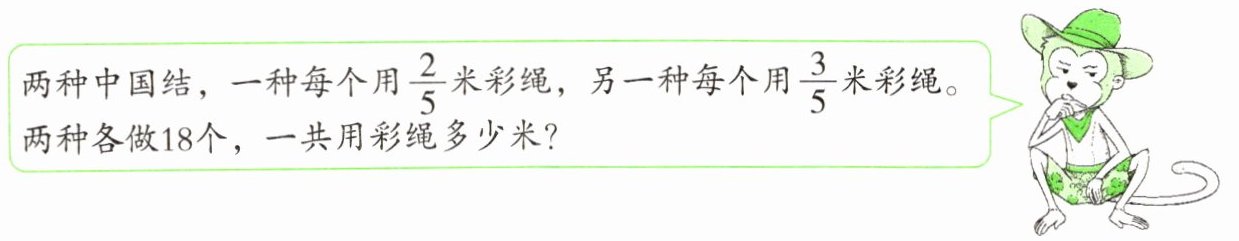 两种中国结,一种每个用$ \frac{2}{5} $米彩绳,另一种每个用$ \frac{3}{5} $米彩绳。两种各做18个,一共用彩绳多少米?
