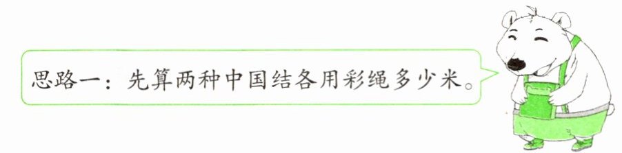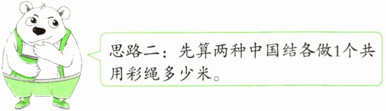 思路二:先算两种中国结各做1个共用彩绳多少米。