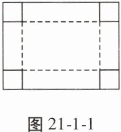 4. 如图 21 - 1 - 1,把一块长为$40cm$,宽为$30cm$的矩形硬纸板的四角剪去四个相同的小正方形,然后把纸板的四边沿虚线折起,并用胶带粘好,即可做成一个无盖纸盒。若该无盖纸盒的底面积为$600cm^{2}$,设剪去小正方形的边长为$xcm$,则可列方程为(