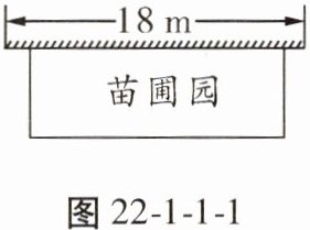 【例 2】如图 22 - 1 - 1 - 1,星光中学课外活动小组准备围建一个矩形苗圃园,其中一边靠墙,另外三边用长为 $ 30m $ 的篱笆围成。已知墙长为 $ 18m $,设这个苗圃园垂直于墙的一边的长为 $ xm $,苗圃园的面积为 $ S $,求 $ S $ 与 $ x $ 之间的函数关系式。
