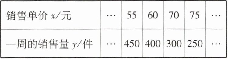 8. 某商家销售具有地方特色的某种商品,每件进价为 $ 40 $ 元。经过市场调查,一周的销售量 $ y $(件)与销售单价 $ x(x \geqslant 50) $(元)的关系如下表: