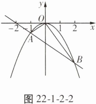 9. (数形结合)如图22-1-2-2,已知二次函数$ y = ax^{2} 与一次函数 y = kx - 2 的图象相交于 A $,$ B $两点,其中$ A(-1,-1) $。