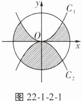 7. 如图22-1-2-1,$ \odot O 的半径为 2 $,$ C_{1} 是函数 y = 2x^{2} $的图象,$ C_{2} 是函数 y = -2x^{2} $的图象,则图中阴影部分的面积为